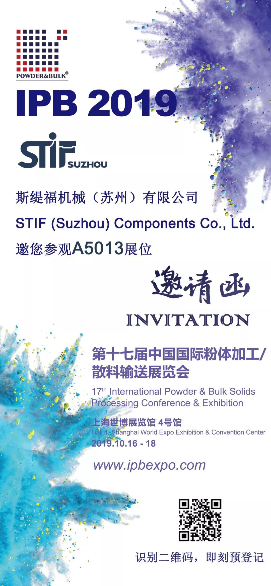 第十七届中国国际粉体加工/散料输送展览会(IPB 2019)定于2019年10月16-18日举行,来自粉碎、研磨、筛分、干燥、混合、过滤、输送、包装、测试、安全防爆等领域的200家粉体展商齐聚上海世博展览馆。